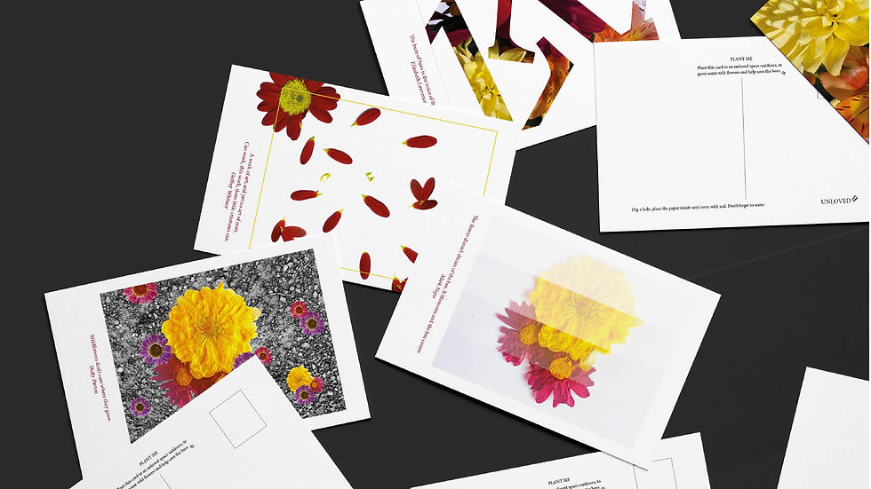 An initiative to get communities working together and planting wildflowers in unloved spaces. The premise is a set of plantable wildflower seed postcards to be shared with friends and family country wide. Simply plant the postcard in an unloved space, either at home, on your balcony or in the community.